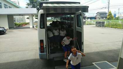 今日は、富山市立図書館の自動車文庫がやってくる日でした。ぐんぐんタイムの時間から1年生が返却や貸出をしていました。