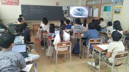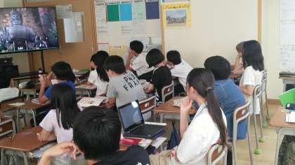 6年生の4時間目は、社会科の学習でした。聖武天皇の時代の話で、大仏開眼の儀式のことを動画を見て考えていました。