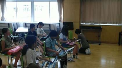 5年生の4時間目は、音楽科の学習でした。「リボンのおどり」という曲を合奏する練習をしていました。