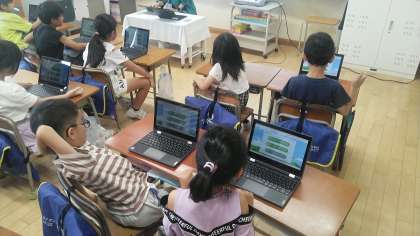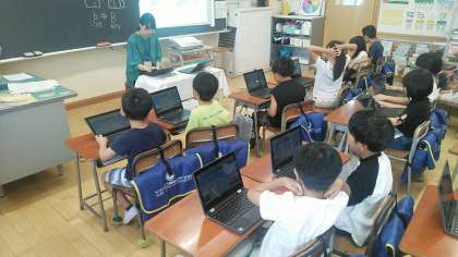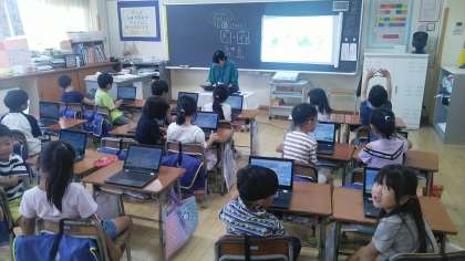 1年生は、1時間目にクロームブックを使っていました。「とやまげんきっこチャレンジ」のやり方を先生から教えてもらっているところでした。