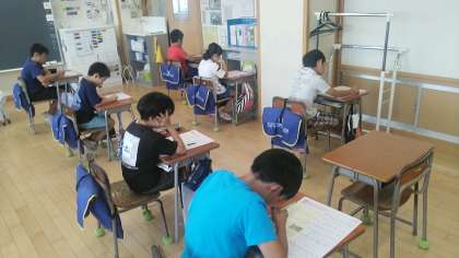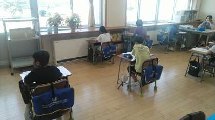 3年生の1時間目は、国語科の学習でした。テストをしていました。とても静かに真剣に取り組んでいました。
