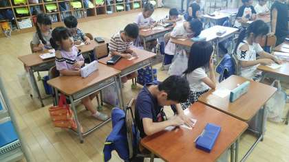 1年生は、3時間目にお手紙を書いていました。1年生のお友達へのお手紙らしいです。