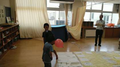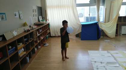 つばめ野級2組は、5時間目にオリジナルすごろくで遊んでいました。風船をふくらませたり、飛ばしたりしていました。