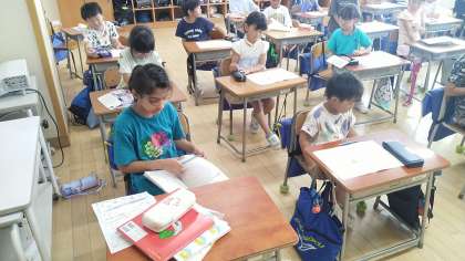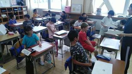 2年生の3時間目は、テスト直しの時間でした。赤色鉛筆を出して、間違い直しをしていました。