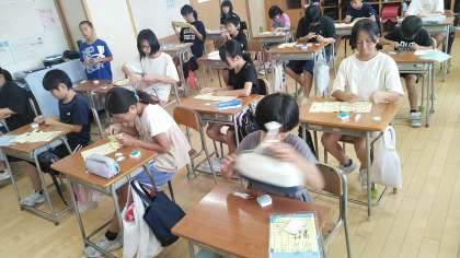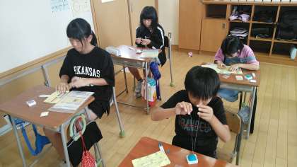 5年生の3時間目は、家庭科の学習でした。針に糸を通して、たま結びをして、これから縫うところでした。