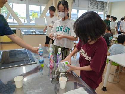 7月23日(火)6年生 比の計算のまとめ 公開日 2024/07/23 更新日 2024/07/23 6年 これまで取り組んできた比の計算の仕方の学習も、今日でまとめです。 学んだことをいかし、美味しいカルピスをつくるために必要な水の量を計算で導き出しました。 みんなで美味しいカルピスは飲めたかな?