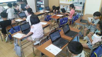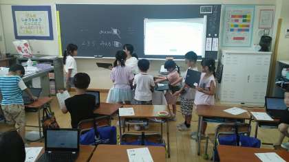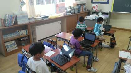 1年生は、5時間目にクロームブックを使っていました。新しいパスワードの入力をしていました。