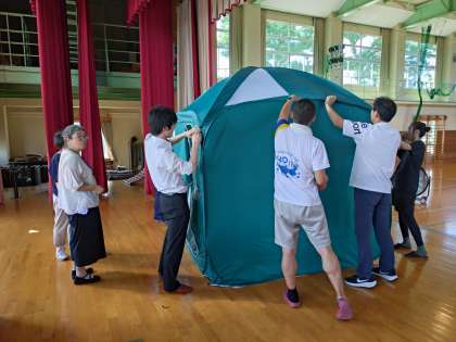 倉垣地区センターの所長さんや富山市役所の防災担当の皆様と一緒に避難所開設訓練を行いました。