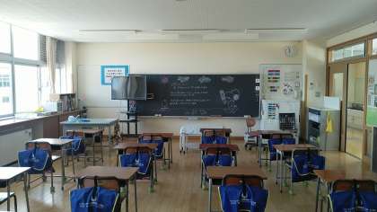 いよいよ明日(8月27日)から2学期が始まります。各教室には、子供たちへのメッセージがいろいろとかかれていました。児童玄関には、ミストが設置されていました。児童のみなさんが、明日、元気に登校してくるのを待っています。