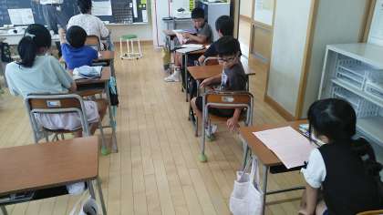 4年1組では、夏休みの宿題を一つ一つ確認しながら集めていました。忘れた人は、明日もってこれるのかな…。