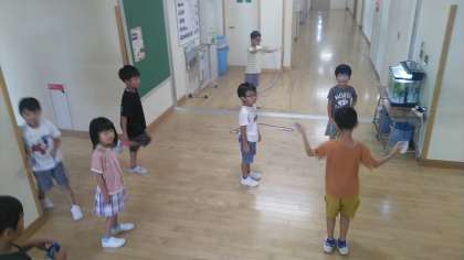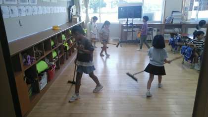 1年生は、なわとびをしたり、教室の掃除をしたりしていました。