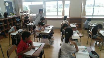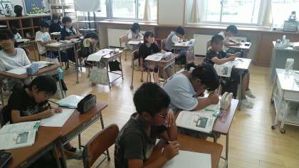 4年1組の2時間目は、算数科の学習でした。わり算のひっ算の練習問題を解いていました。