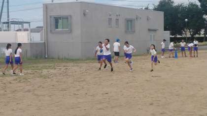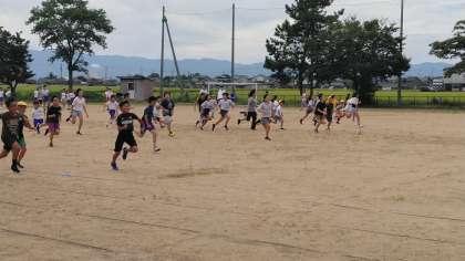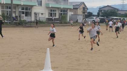 今日は、晴れていたのでグラウンドで走っていました。終わりの方では、たくさんの子供たちが一緒にスタートしていました。とてもすてきでした。