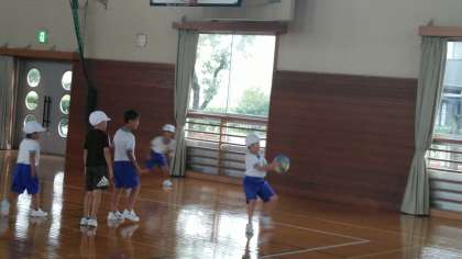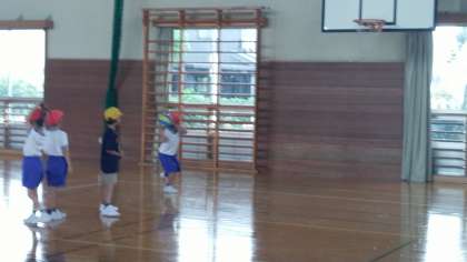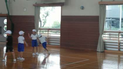 2年生の5時間目は、体育科の学習でした。体育館でボールを投げたりキャッチしたりする練習をしていました。