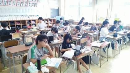 6年生の5時間目は、理科の学習でした。月の形について、調べ方を考えながら調べていました。