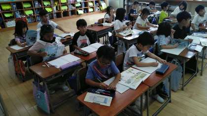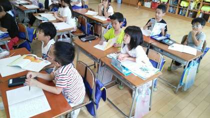 1年生の5時間目は、国語科の学習でした。「ぺったん」の「っ」や「じょうず」の「ょ」等、小さい文字について学習していました。