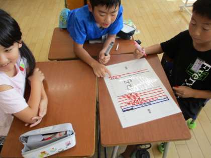 保健の学習で、健康でいるための1日の過ごし方を考えました。例に挙げられた1日をどのように変えたら、より健康になれるのかをグループで話し合いました。