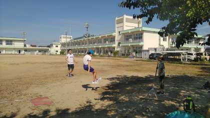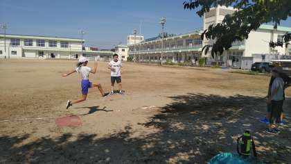 6年生の2時間目は、体育科の学習でした。チャレンジ陸上記録会も近いので、走り幅跳びの練習をしていました。