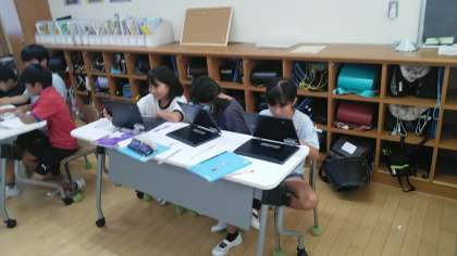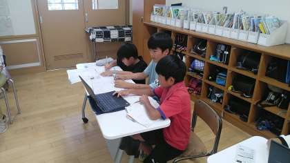 4年2組の3時間目は、算数科の学習でした。あまりのあるわり算のひっ算の仕方を自分のやりたい方法で考えていました。