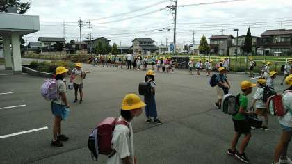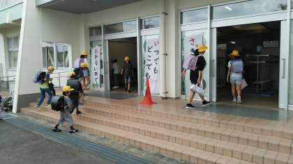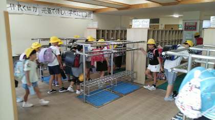 今朝の児童玄関の様子です。曇り空でしたが、子供たちは月曜から元気です。