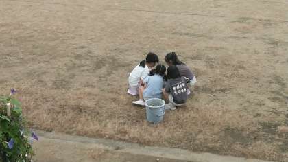今日は、グラウンドの草むしりをしている子供がたくさんいました。