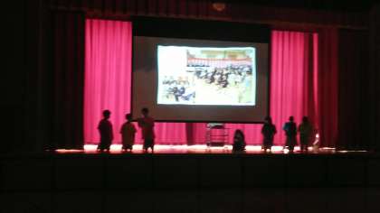 6年生は、4時間目に体育館で表現発表会の練習をしていました。一人一人が自分の役割を確認しながら進めていました。