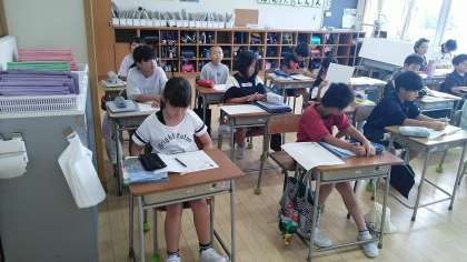 4年2組は、4時間目に「わたしの防災マニュアルをつくろう」という学習をしていました。