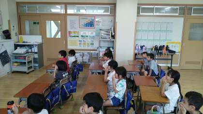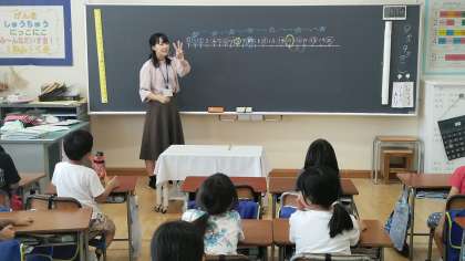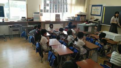 1年生の5時間目は、算数科の学習でした。10までの数直線を使って、大きい数や小さい数について考えていました。