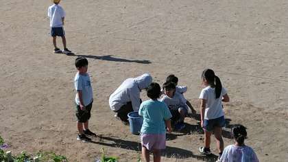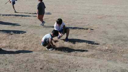 今日もグラウンドの草むしりをしている子供たちがたくさんいました。