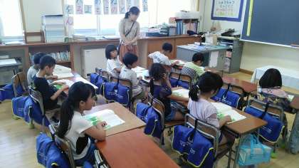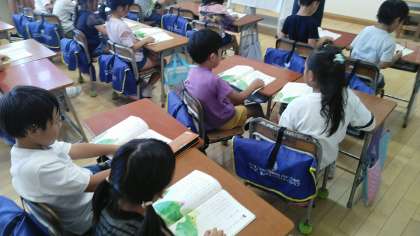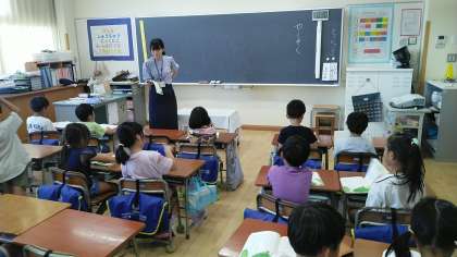 1年生の2時間目は、国語科の学習でした。「やくそく」というお話の作者や絵を描いた人等の確認をしているところでした。
