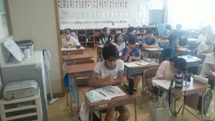 6年生は、2時間目にチャレンジ陸上記録会の確認をしていました。