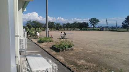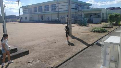 4年2組の5・6時間目は、理科の学習でした。グラウンドで、昼間の「月」の観察をしていました。