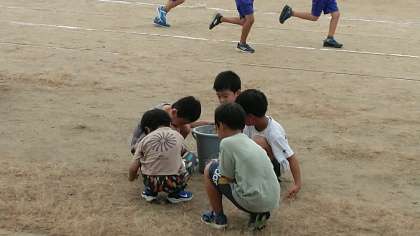 1年生の中には、グラウンドの草むしりをしている子供たちもいました。