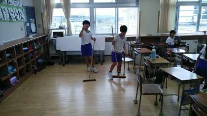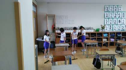 今日のきらきらタイムに、清掃をしている4年生の子供たちがいました。