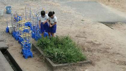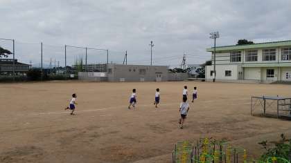 2年生は、グラウンドの草むしりをしたり、花壇の世話をしたり、グラウンドを走ったりしている子供がいました。