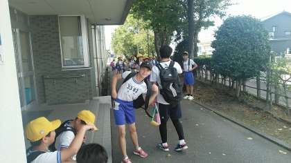 6年生が、チャレンジ陸上記録会に出場するため学校を出発しました。県の総合運動公園陸上競技場に向かいました。