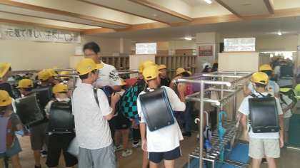 今朝の児童玄関の様子です。三連休あけですが元気な挨拶をしてくれる子供たちが何人もいました。