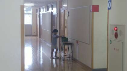 黒板消しをクリーナーできれいにするのを毎日の仕事にしている1年生もいます。