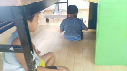 9月18日(水) 1・4年生 隠れ家? 公開日 2024/09/18 更新日 2024/09/18 1年 つばめ野級2組は、1時間目にクロームブックでタイピングをしていました。机とマットでつくった「隠れ家?」の中で取り組んでいる児童もいました。
