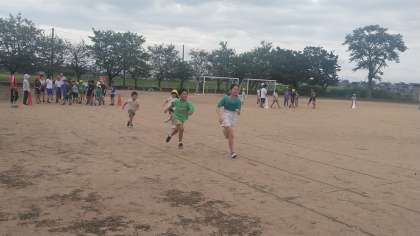 今日のぐんぐんタイムの赤団の様子です。暑さ指数も高くなかったのでグラウンドで走りました。