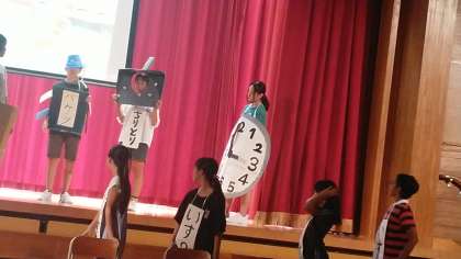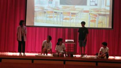 6年生は、5時間目に体育館で表現発表会の劇の練習をしていました。どんどん演技がうまくなっています。