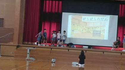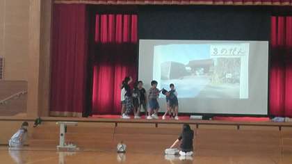 2年生は、1時間目に体育館で表現発表会の練習をしていました。かけ算の修行の劇の全体の形が少しずつ見えてきました。