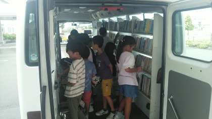 今日は、富山市立図書館の自動車文庫の日でした。自分の好きな本を見付けることができた1年生は、とても嬉しそうでした。よかったです。