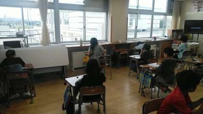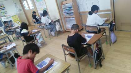 4年2組の3時間目は、理科の学習でした。「月や星の見えかた」の単元のテストをしていました。