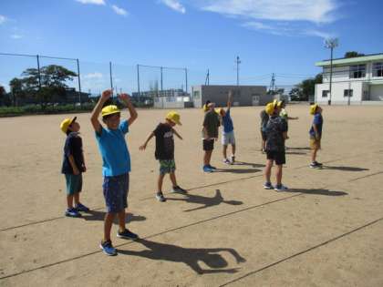 1限目は雲が多かったのか、残念ながらかげおくりに失敗していました。3限目に算数の練習問題が終わって空を見ると、「かげおくりのよくできそうな空」だったので、急いで外に出ました。やっと成功し、おもしろいポーズや友達と一緒に様々なかげの形をつくって、ちいちゃんやお兄ちゃんのように楽しみました。