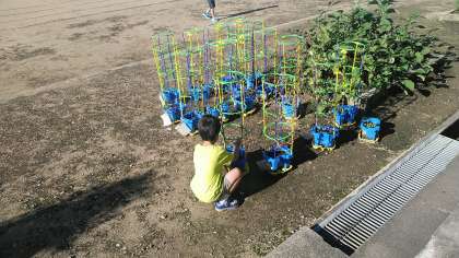 アサガオの種を取ったり水をあげたりしていました。