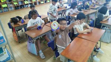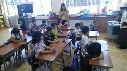 1年生の3時間目は、算数科の学習でした。時計の学習をしていて、「3時」を算数セットの時計でつくっていました。