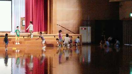 2年生は、3時間目に体育館で表現発表会の練習をしていました。