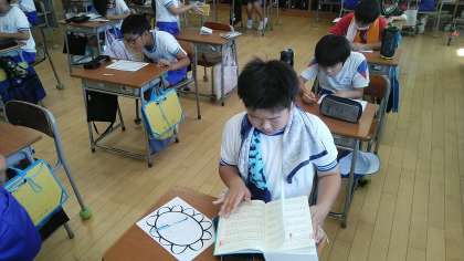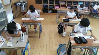 4年1組の3時間目は、国語科の学習でした。「ありがとうの花」という家族等への感謝の気持ちを伝える手紙を書いていました。