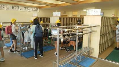 今朝の児童玄関の様子です。清々しい朝の時間でした。
